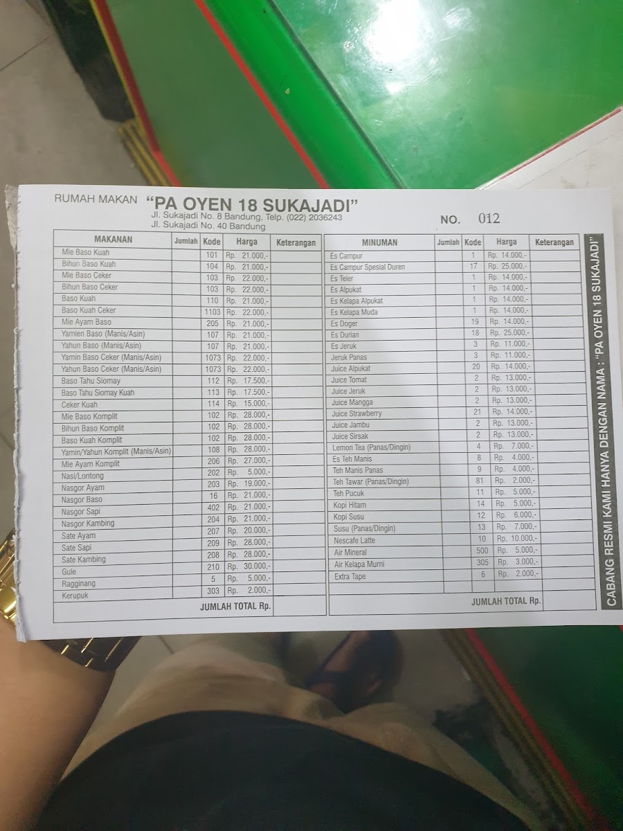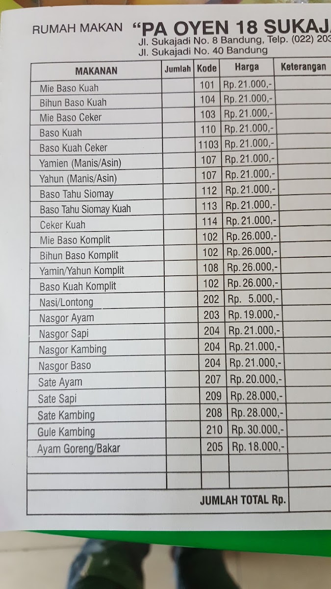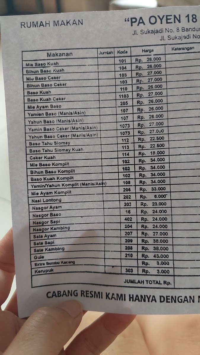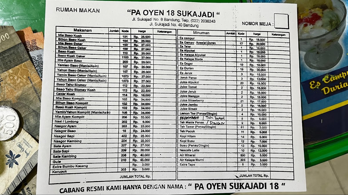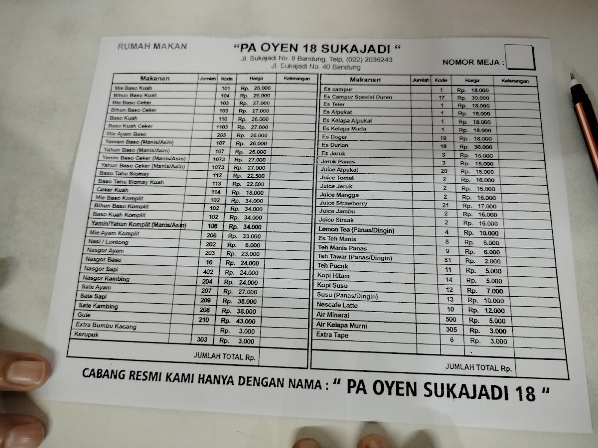 Welcome to Pa Oyen 18 Sukajadi, a culinary gem nestled in Bandung since 1962. This legendary establishment is renowned for its plethora of delightful offerings, particularly its Es Campur, a refreshing dessert that has captured the hearts of many, including local food enthusiasts. As you step into this petite venue, you'll find more than just desserts; savor classics like beef satay, nasi goreng, and bakso, all accompanied by free-flowing tea—a delightful touch reminiscent of traditional Sundanese dining.